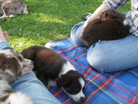 Die Welpen werden mit 6,5 Wochen Augenuntersucht vom anerkannten Ophtalmologen (DOK ), bei uns untersucht Frau Dr. Meißner alle unsere Aussies. Bei dem Termin für die Augenuntersuchung werden sie gechippt.