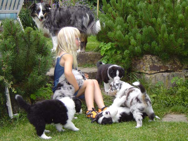 Scottie hatte insgesamt 3 Würfe: 2004, 2006 und 2008, anläßlich seines Geburtstages am 02.06.2013 wäre er 15 Jahre alt geworden ( er ist mit 13,5 Jahren verstorben), wurde Rücksprache mit den beiden Züchtern gehalten es sind aus beiden Würfen 2004 und 2006 keine Krankheiten/Erbkrankheiten bekannnt, auch der Wurf von 2008 der bei mir statt fand sind beide Hündinnen absolut gesund,beide sind kastriert. Agnes berichtet mir über Blue es ist ihr bester Hund und Elisabeth über Pearly: Weltbester Hund das mich natürlich sehr freut! Pearly ist mit Elisabeth sehr erfolgreich im DogDancing, Axel geht mit Pearly gerne Duathlon die Beiden stehen stets auf dem Siegertreppchen und seit 2013 nimmt die kleine Anna-->( 6 Jahre alt )mit Pearly im Agility Training teil.