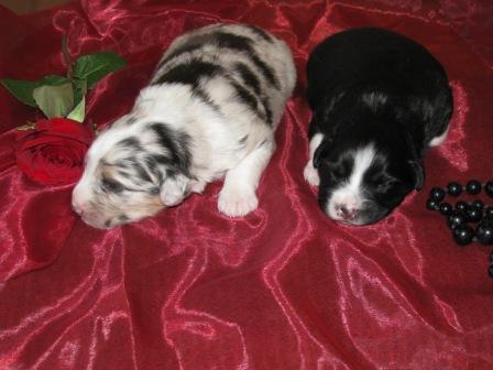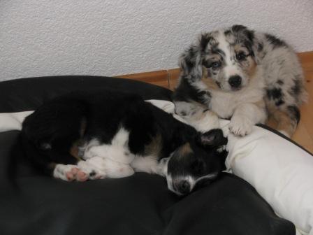 Unsere Mädchen, BlueRose ( Blue Merle, li ) und BlackPearl ( Black Tri, re )