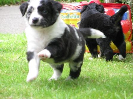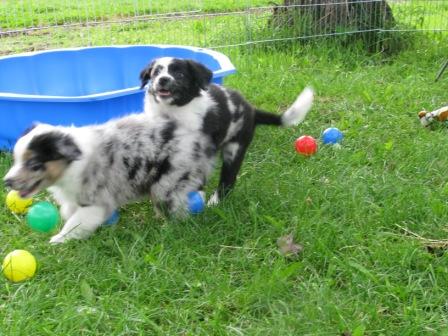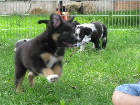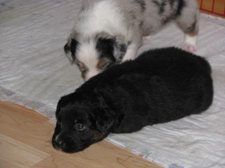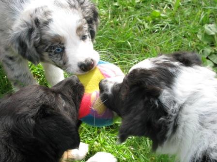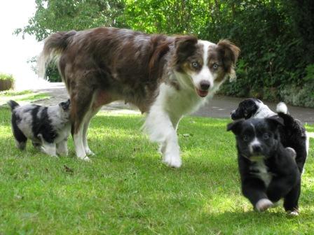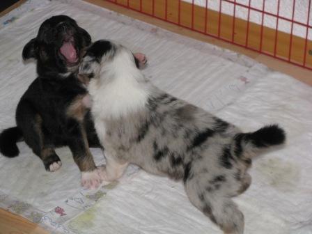 Conor( blue merle) und Merlyn(black tri) Conor und Fionn (black tri)