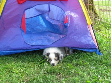 andere schlafen im Zelt, unser Conor unterm Zelt Brianna